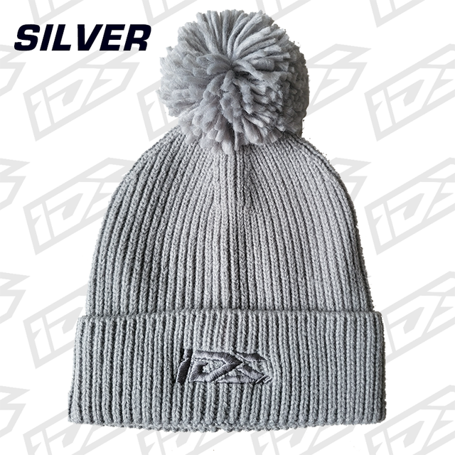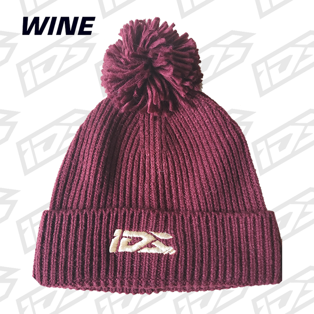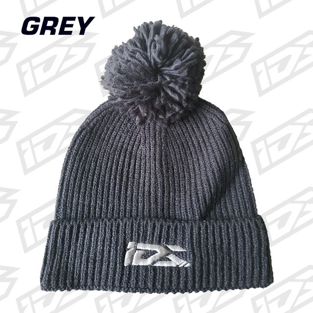 Grey bobble hat with IDS logo on the front.